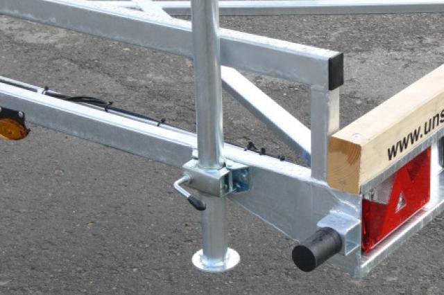 - Holzbelegte Querträger und Abstellstütze hinten für sicheren Stand