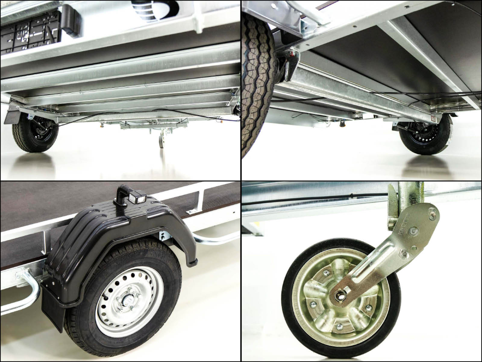 - Gummifederachse mit Einzelradfederung und Radstoßdämpfer und Tempo 100