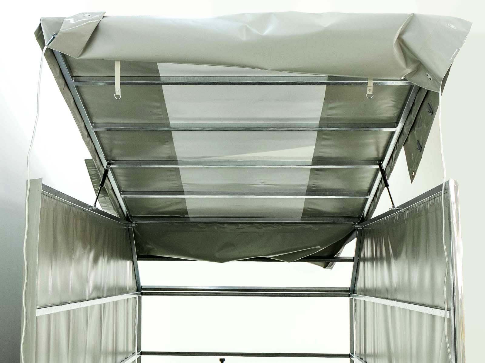 - Dreiseitiger verzinkter Stahl Aufbau ( pulverbeschichtet schwarzgrau )