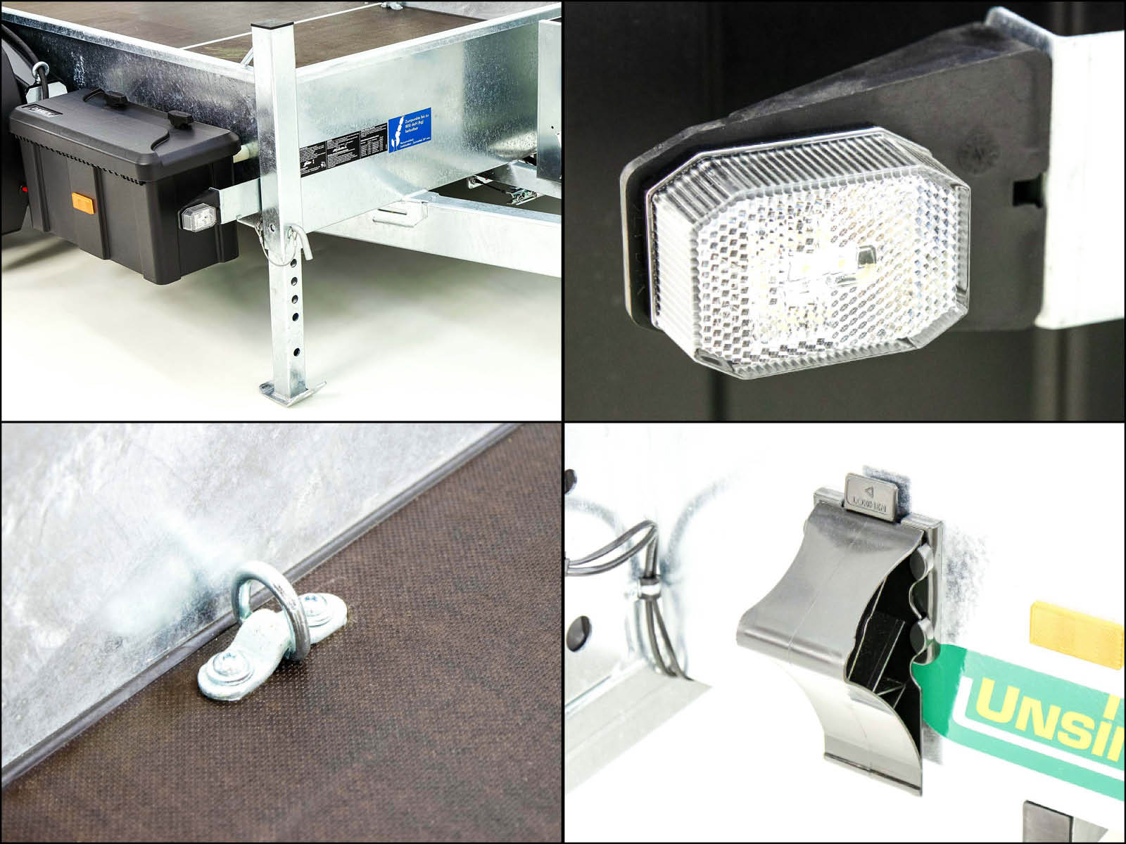 - 6 klappbare Zurringe auf Bodenplatte m. bis 800daN