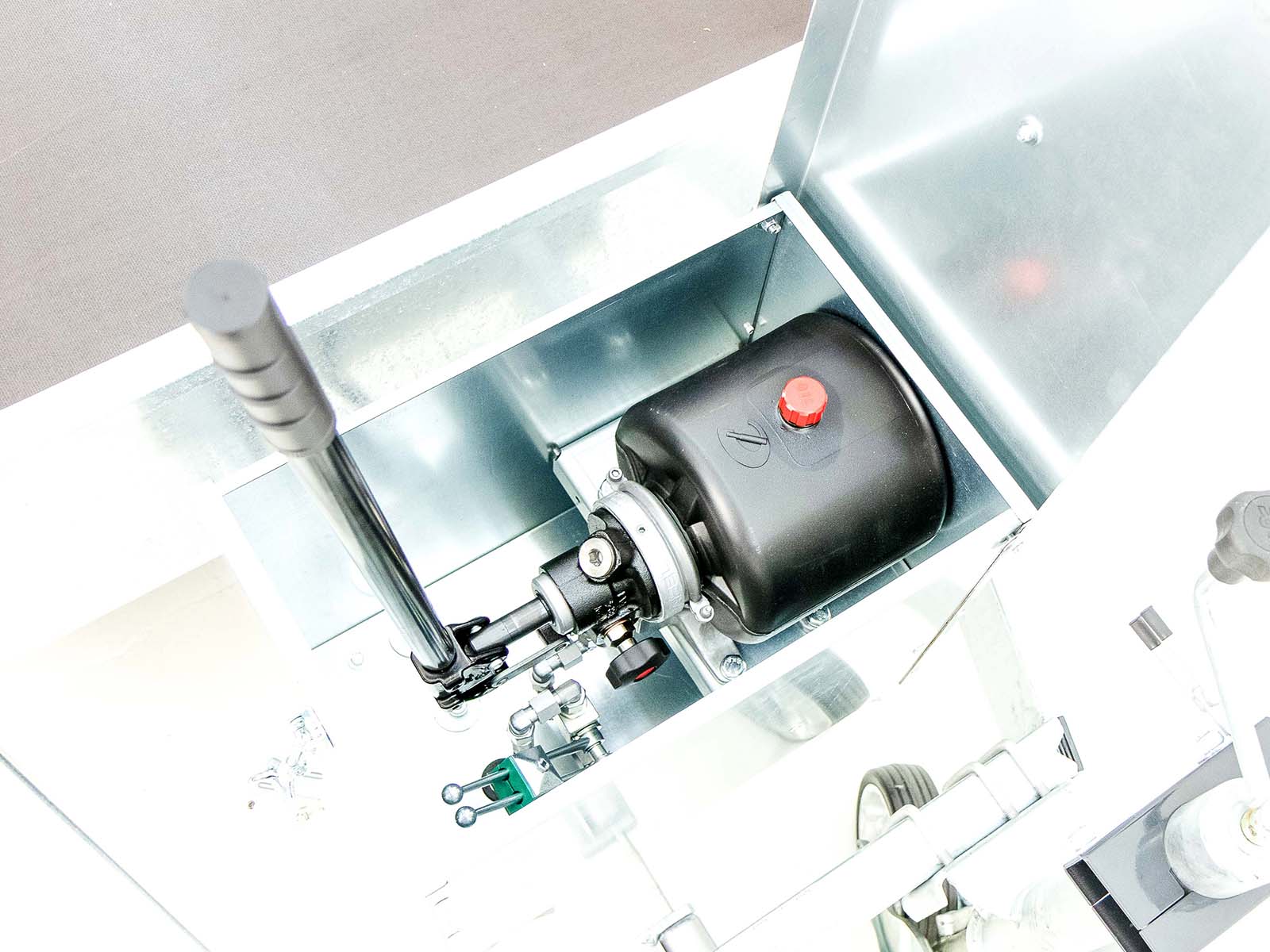- Ladefläche hydraulisch absenkbar ( Handpumpe mit Senkventil )