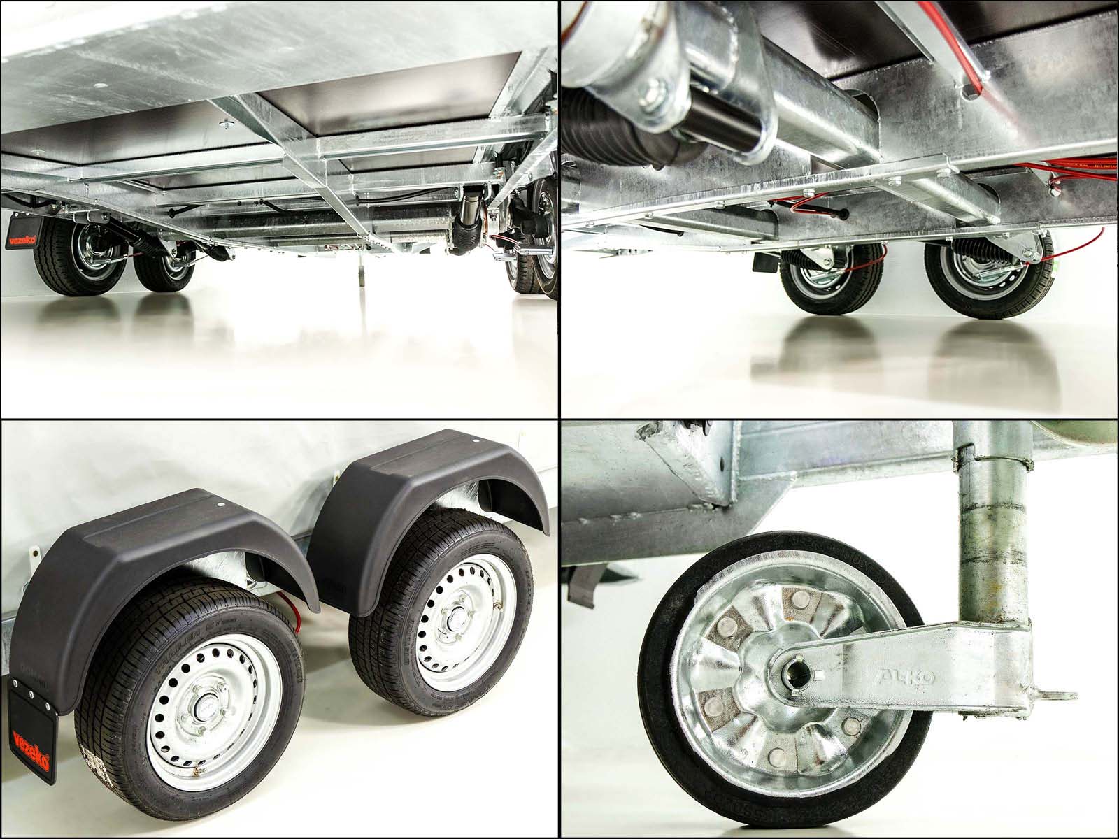 - Gummifederachse mit Radstoßdämpfer + Tempo 100| V-Deichsel mit Zugkugelkupplung | Schwerlaststützrad