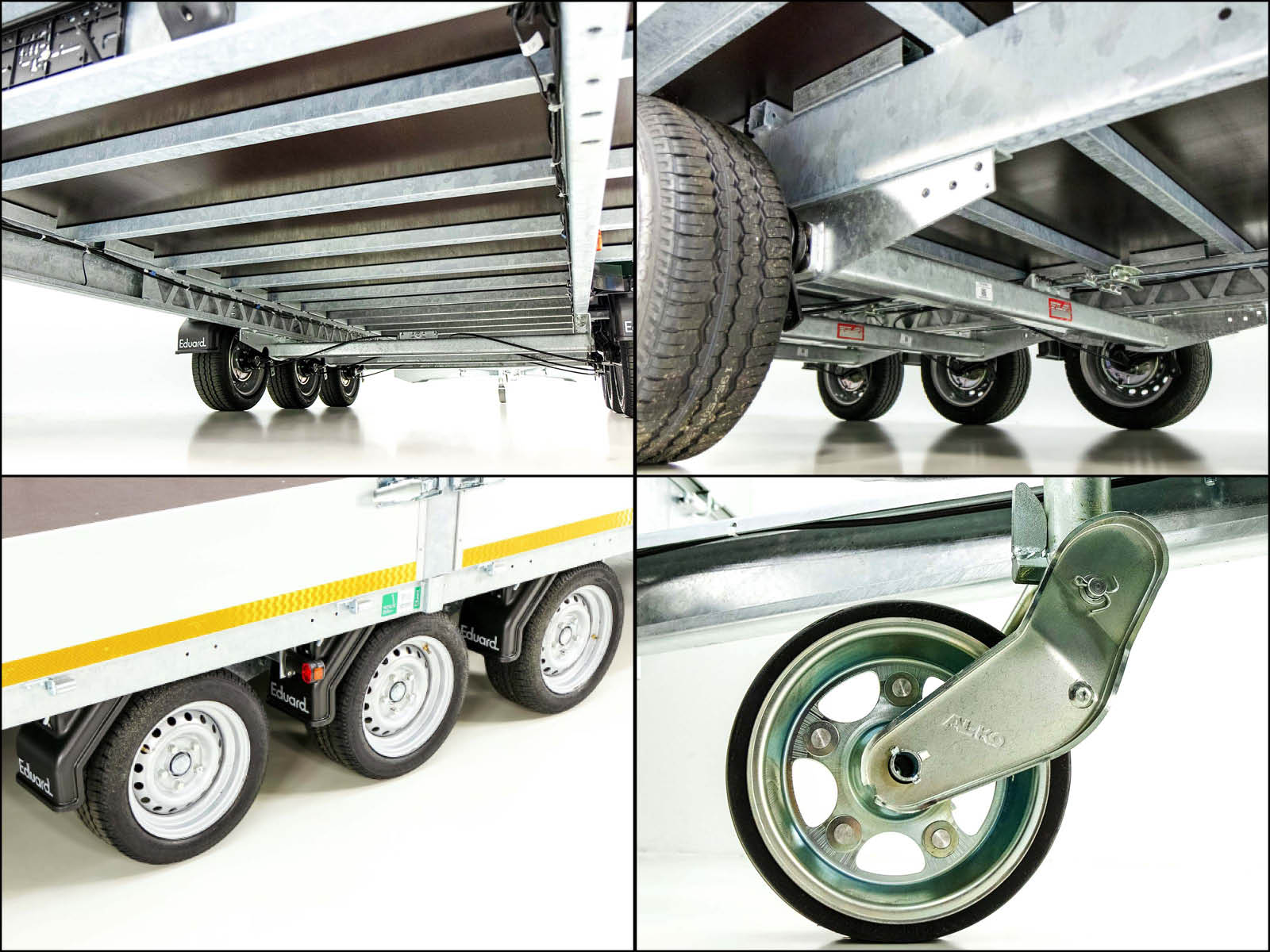 - Gummifederachse | V-Deichsel mit Zugkugelkupplung | Automatik-Stützrad | Rückfahrautomatik