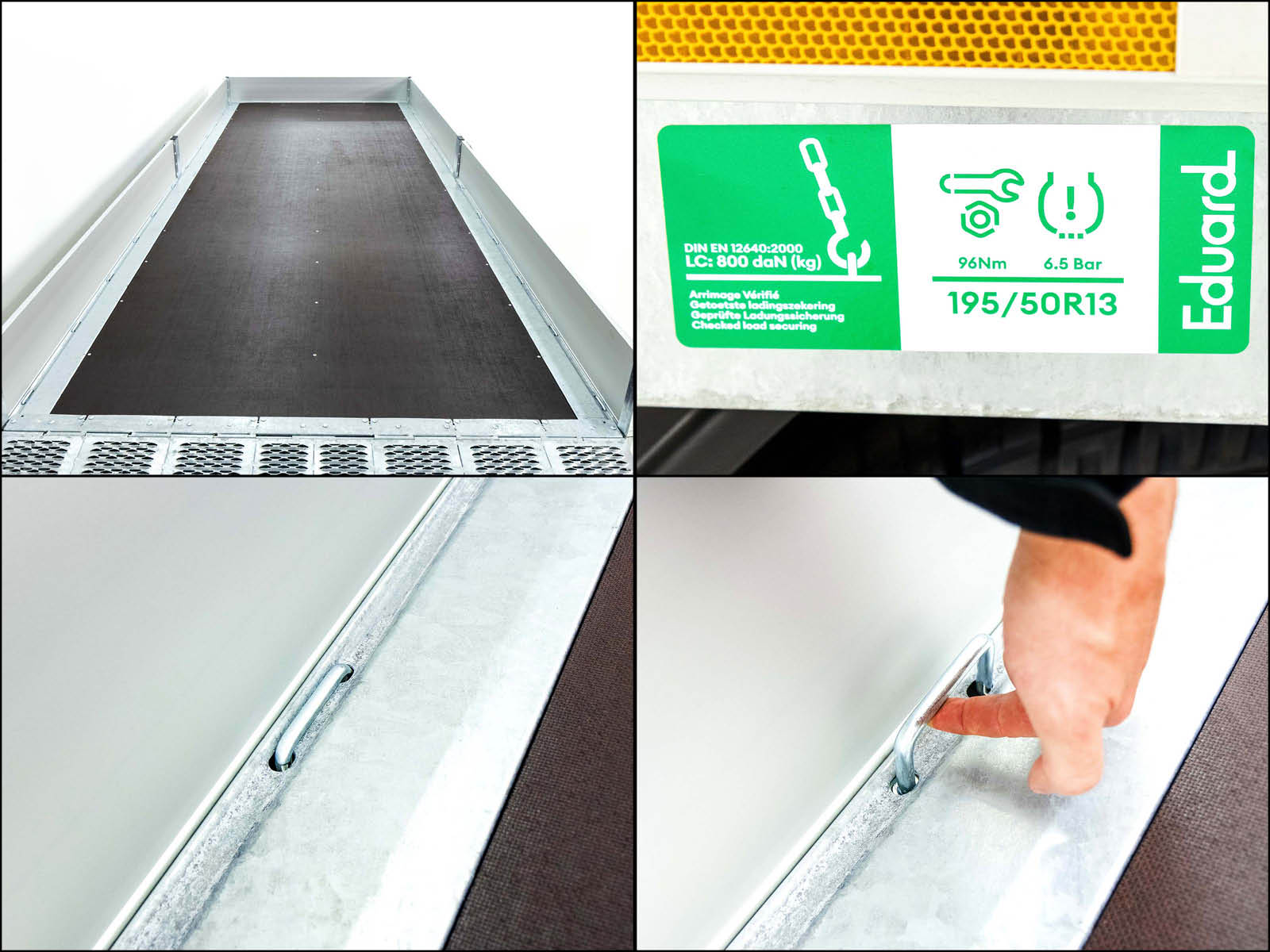 - 20 Verzurrösen im Bodenrahmenprofil, 800 daN (kg)