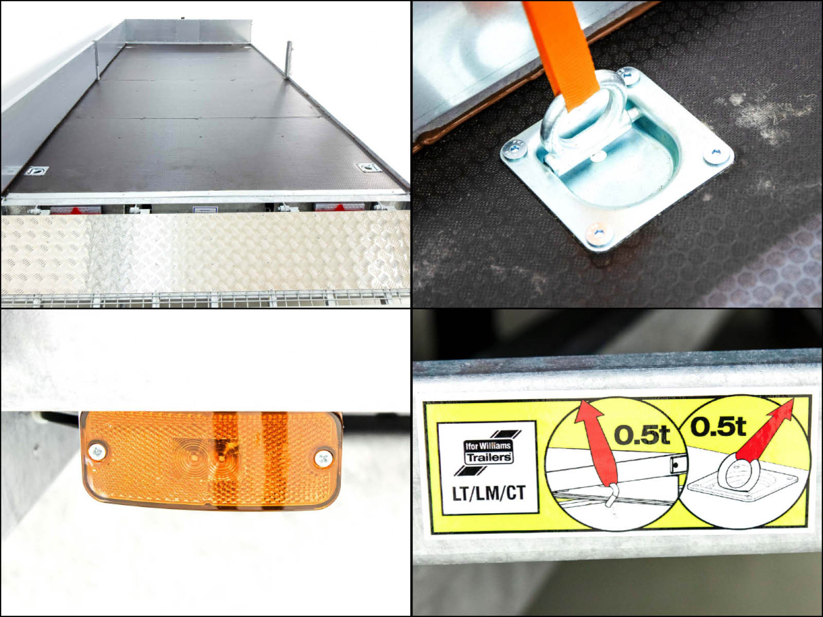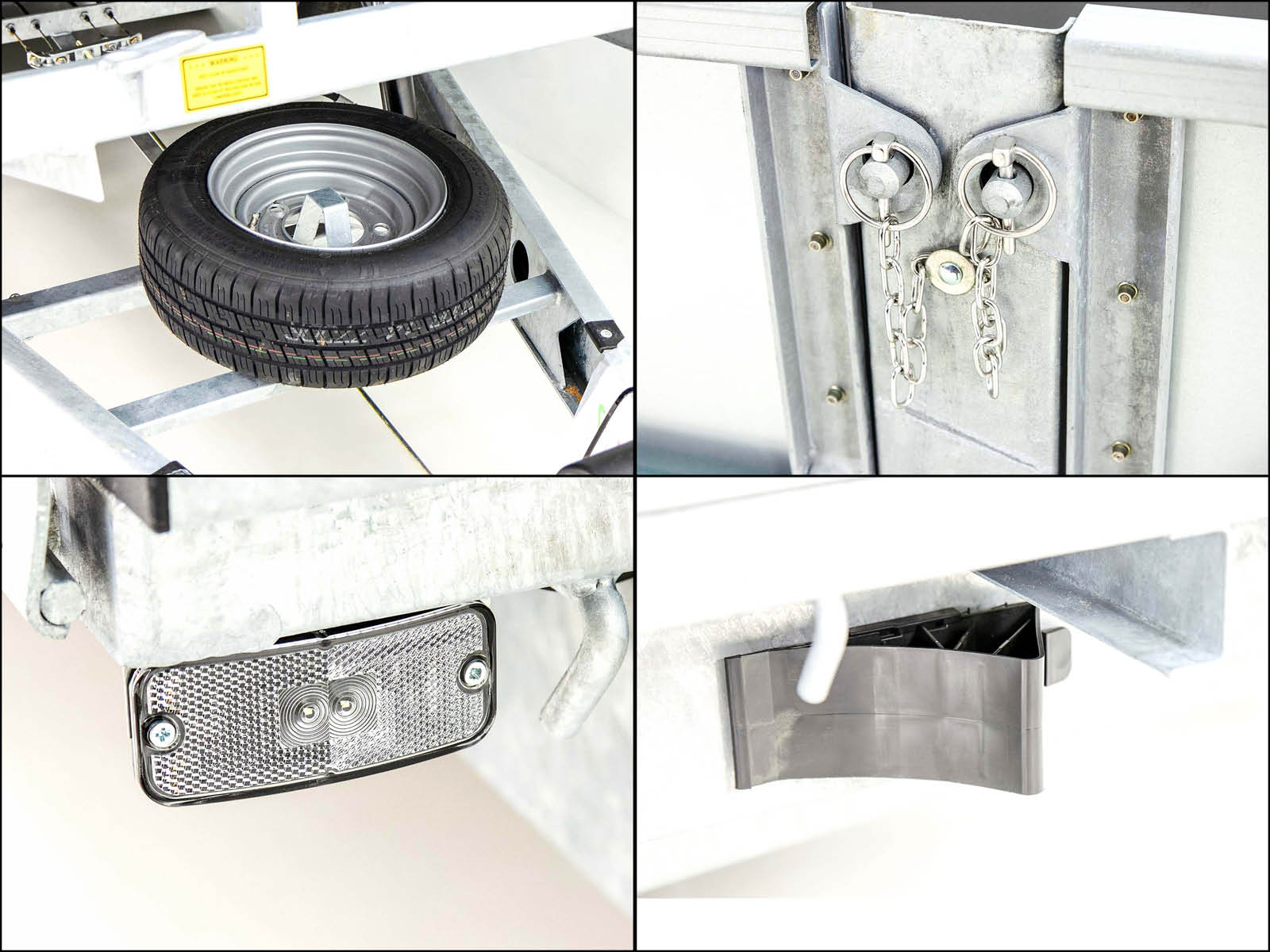 - 4 Zurrmulden mit jeweils bis zu 600 daN (kg) belastbar und DEKRA zertifiziert