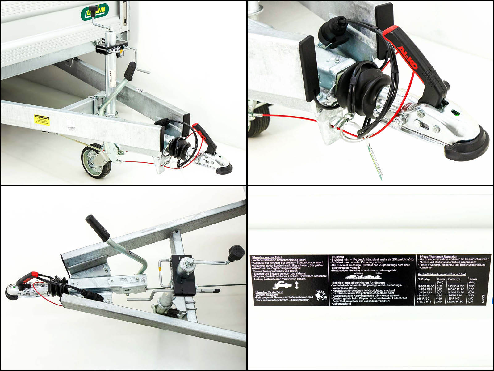 - Alko | Gummifederachse | V-Deichsel mit Zugkugelkupplung | Automatik-Schwerlaststützrad | Rückfahrautomatik