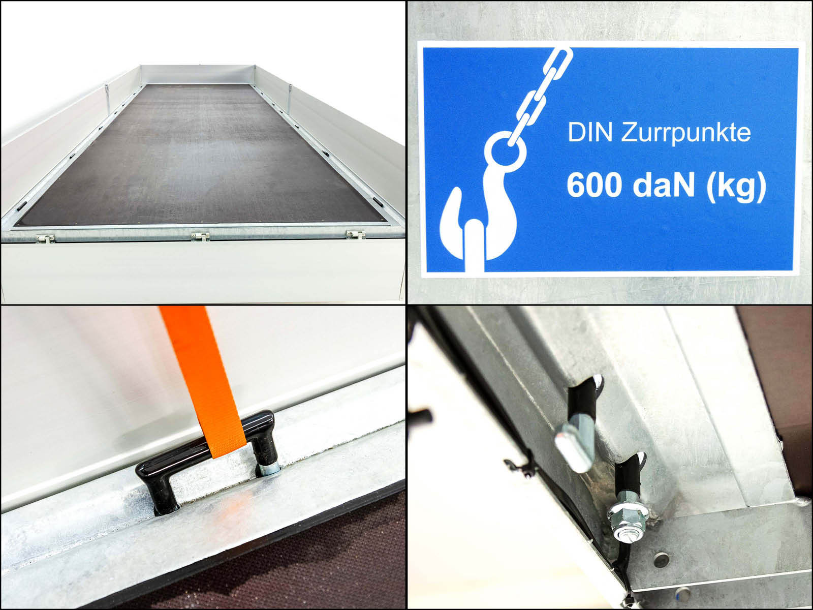 - 10 Verzurrösen im Bodenrahmenprofil, gummiert 500 daN (kg)