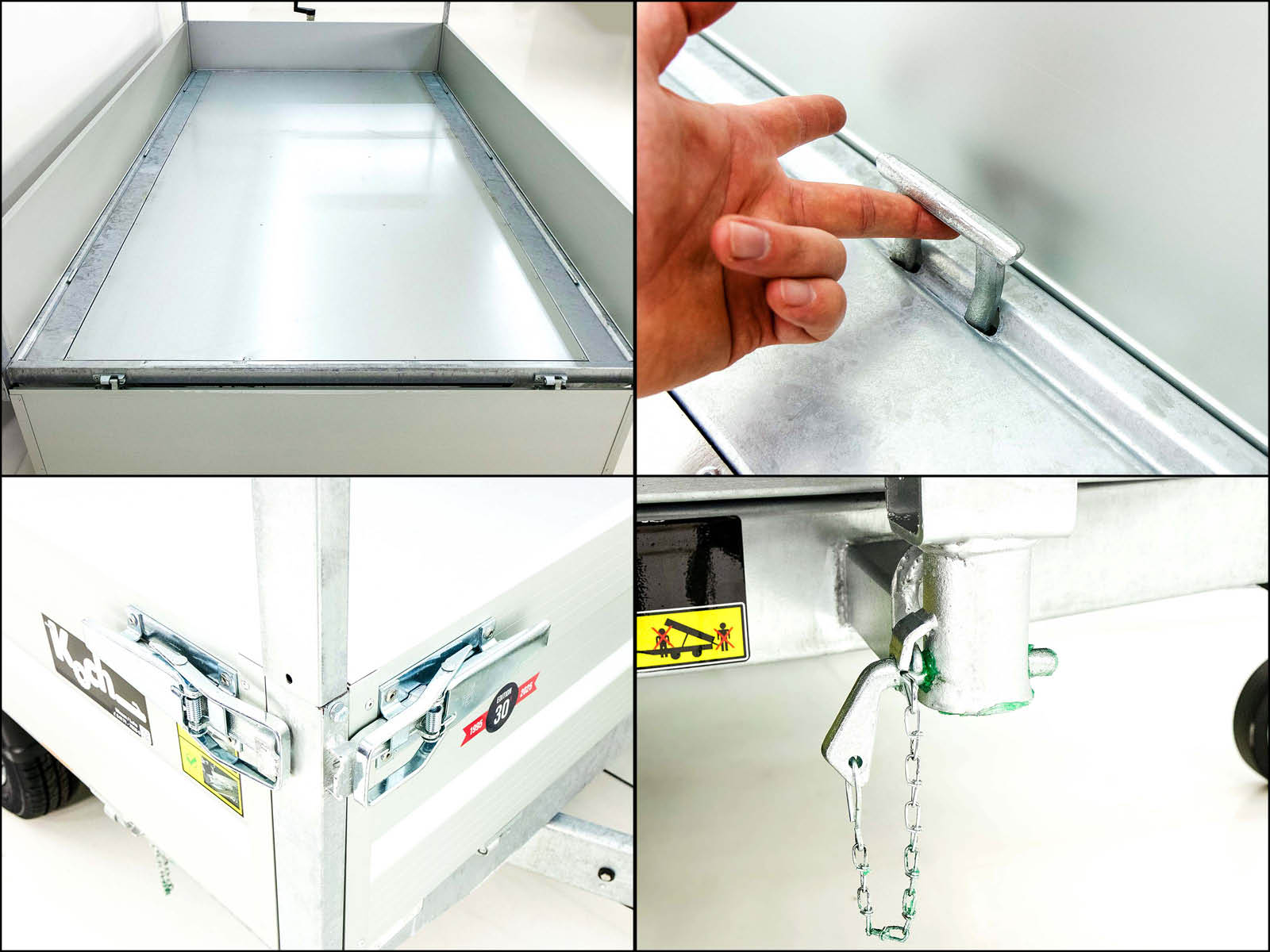 - Bodenplatte: Stahlblech verzinkt auf Siebdruckplatte
