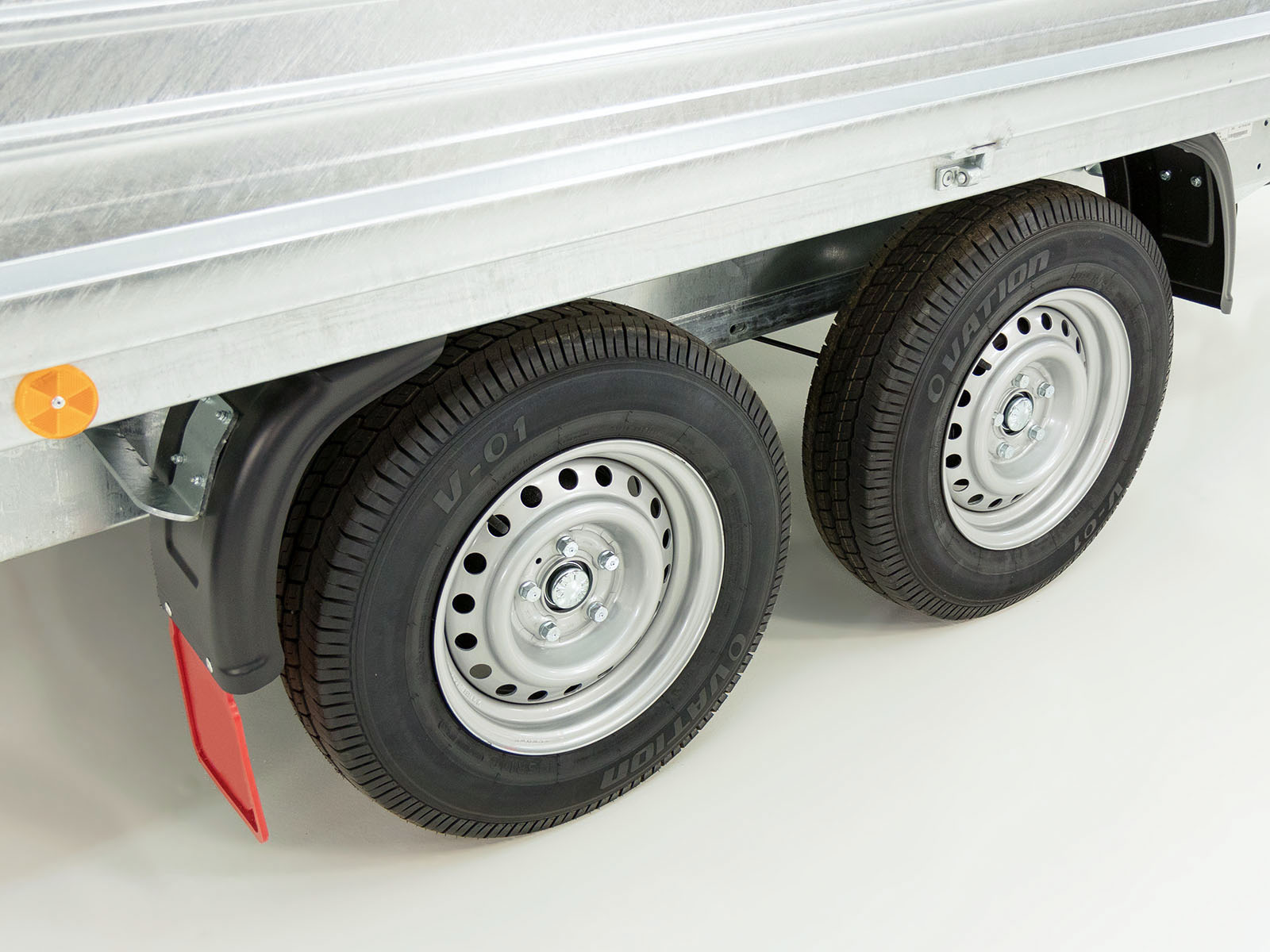 - Gummifederachse mit Einzelradfederung | V-Deichsel mit Zugkugelkupplung | Automatik-Schwerlaststützrad