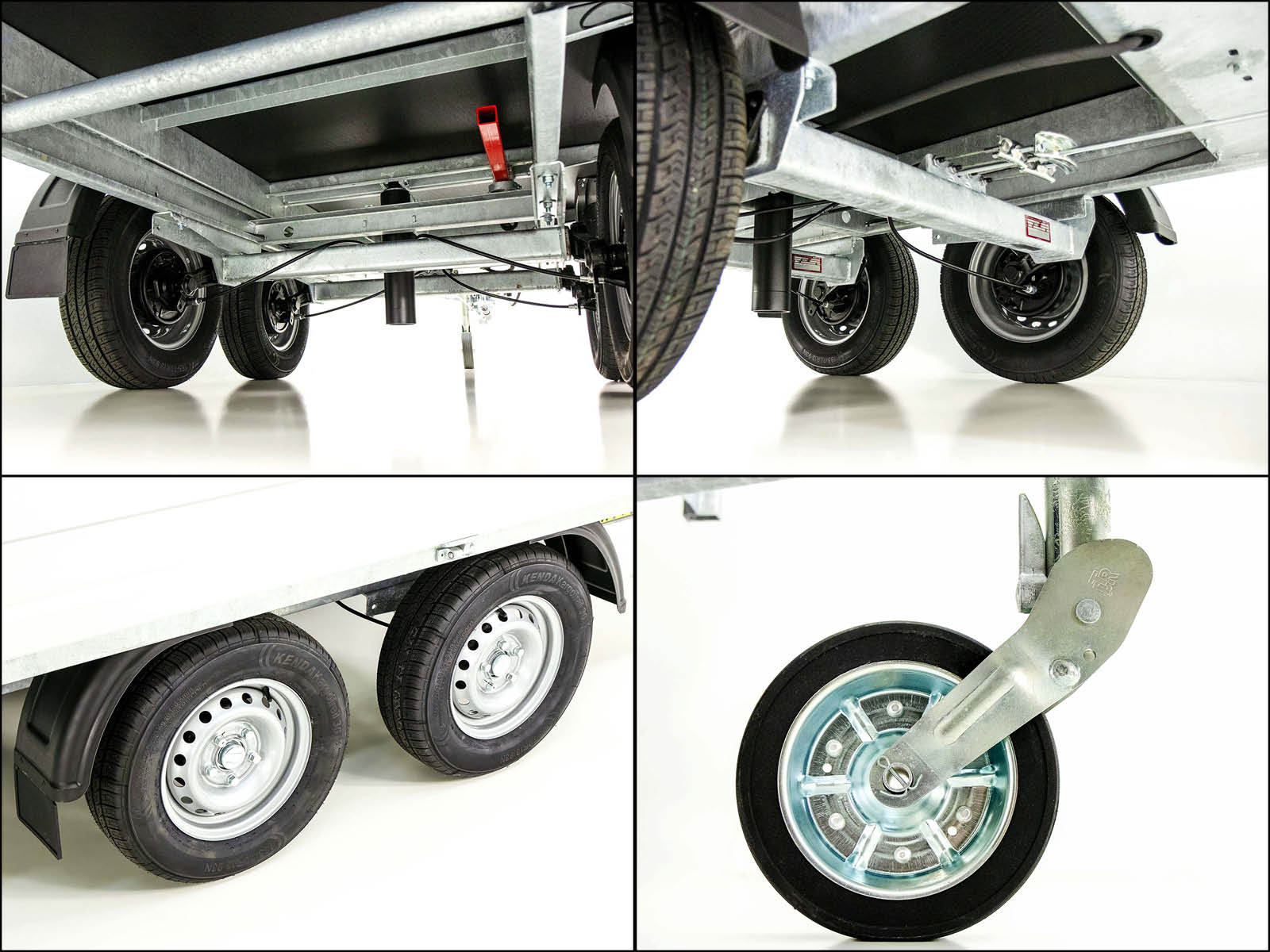 - Achse und Zugrohr komplett feuerverzinkt | Gummifederachse | V-Deichsel mit Zugkugelkupplung | Automatik-Schwerlaststützrad