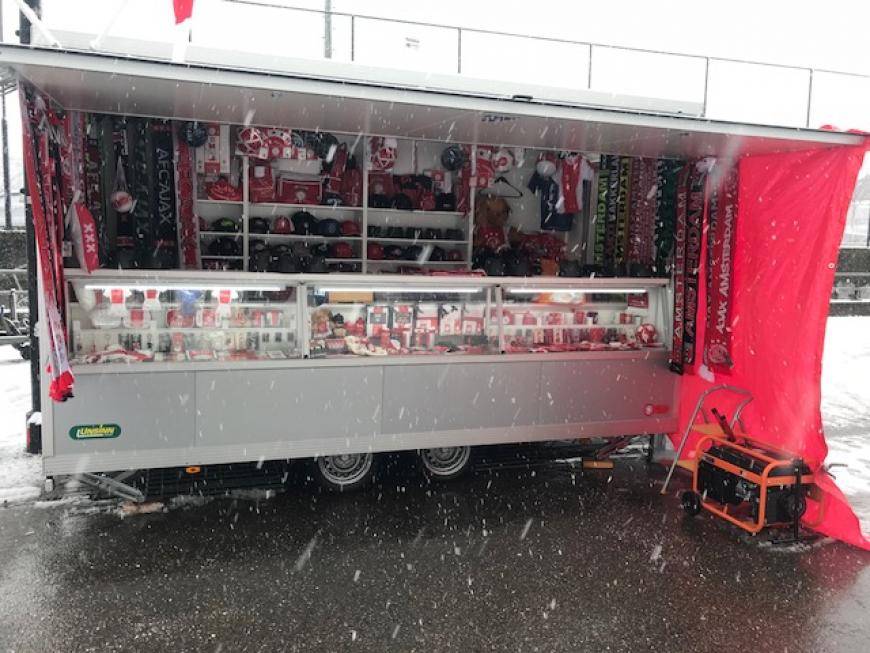 Unsere Kofferanhänger können mit Verkaufsklappen rechts oder links ausgestattet werden, die beim Öffnen zusätzlichen Schutz bieten und als Präsentationsfläche dienen. Eine Türe an der Vorderseite sorgt für bequemen Zugang für Personal und erleichtert den Aufbau des Verkaufsbereichs.