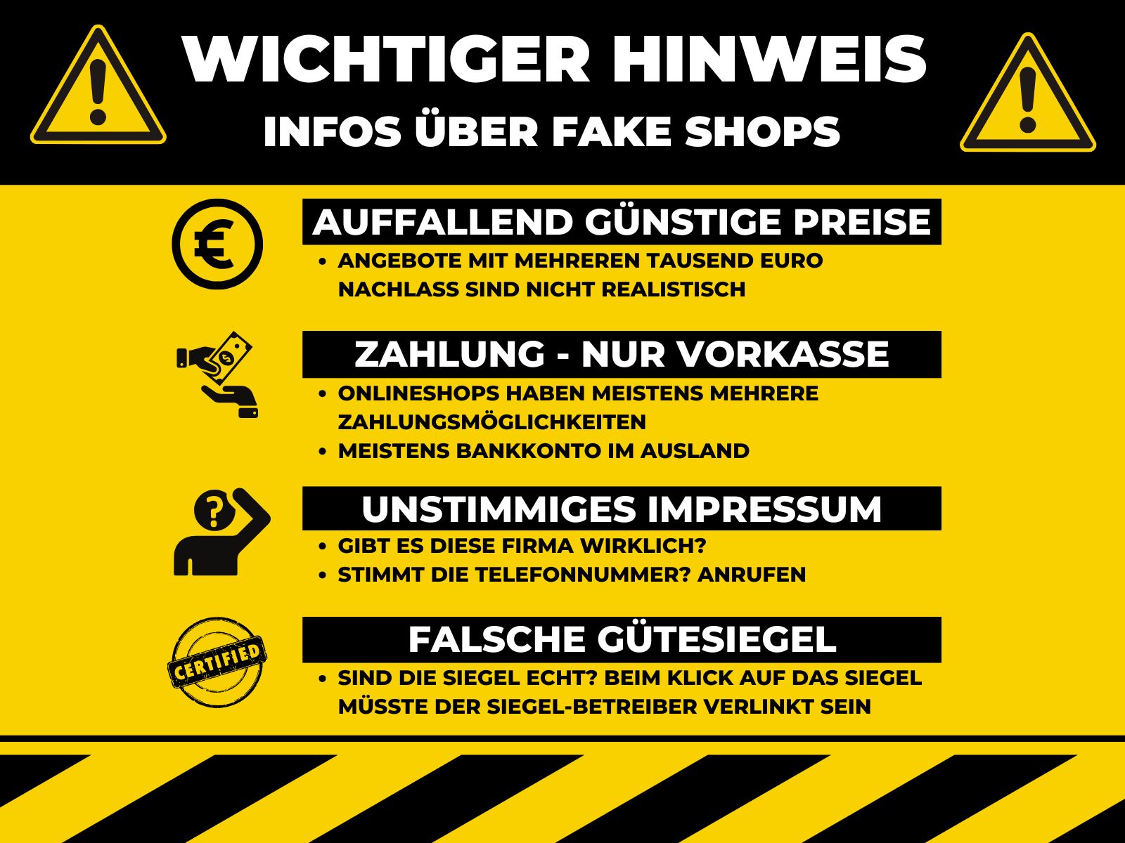 – nicht nur auf Sicherheitsanzeige verlassen (wenn vorhanden)
