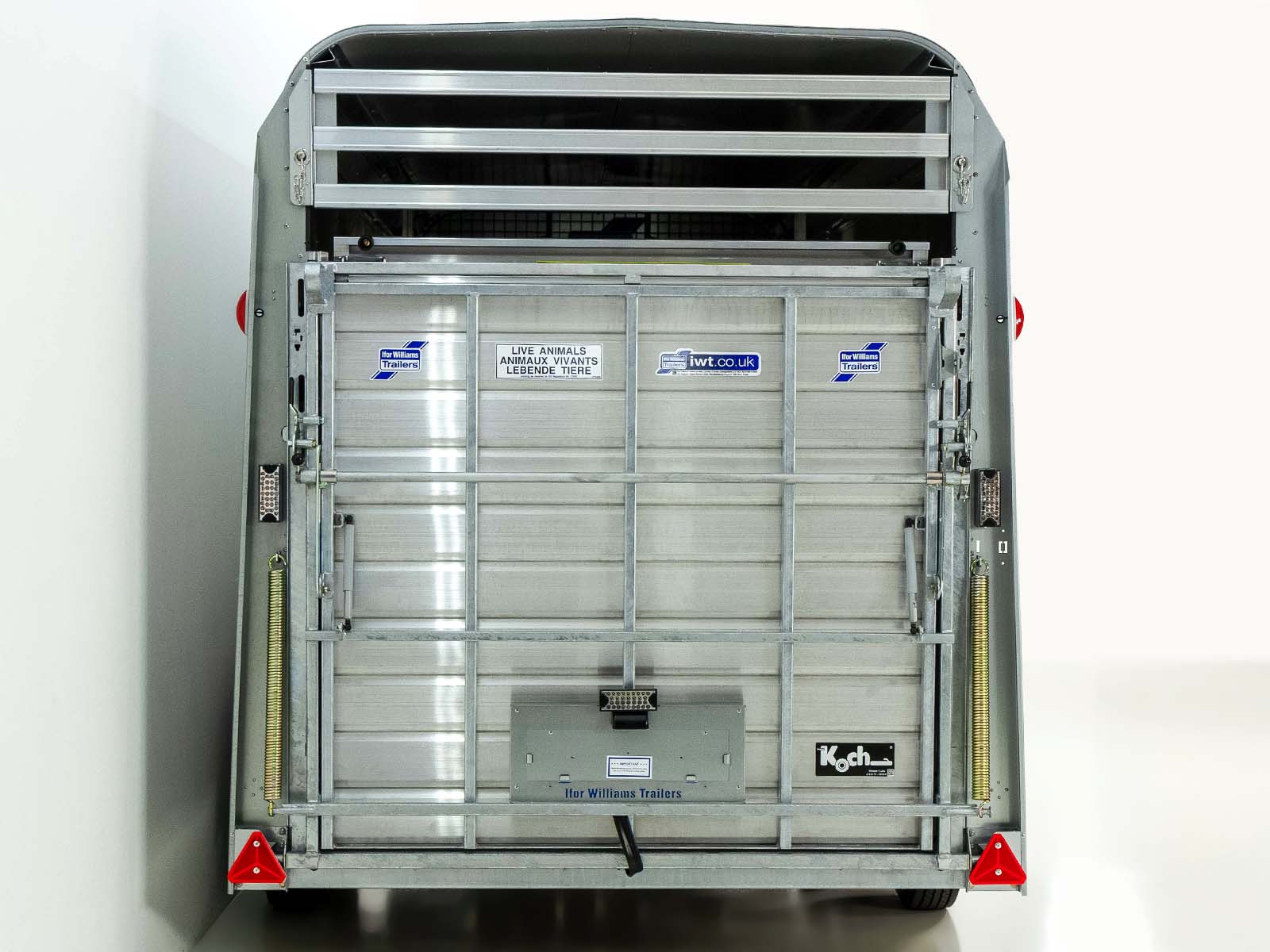 Der Viehanhänger vom Marktführer Ifor Williams besitzt vorne eine geteilte Einstiegstür. Beidseitig befinden sich Lüftungsklappen, die für eine ausreichende Ventilation im Innenraum sorgen, so dass die Tiere genug Frischluft in der Transportbox haben und stressfrei transportiert werden können. Zusätzlich überzeugt das Modell TA510 von Ifor Williams mit einer großzügigen Innenraumgröße von 178 x 434 x 213 cm. Damit lassen sich auch besonders große Kühe und Rinder leicht befördern, ohne dass es zu einem Platzmangel kommt. Das Rampengatter aus Aluminium sichert links und rechts zusätzlich bei der Viehbeladung ab.