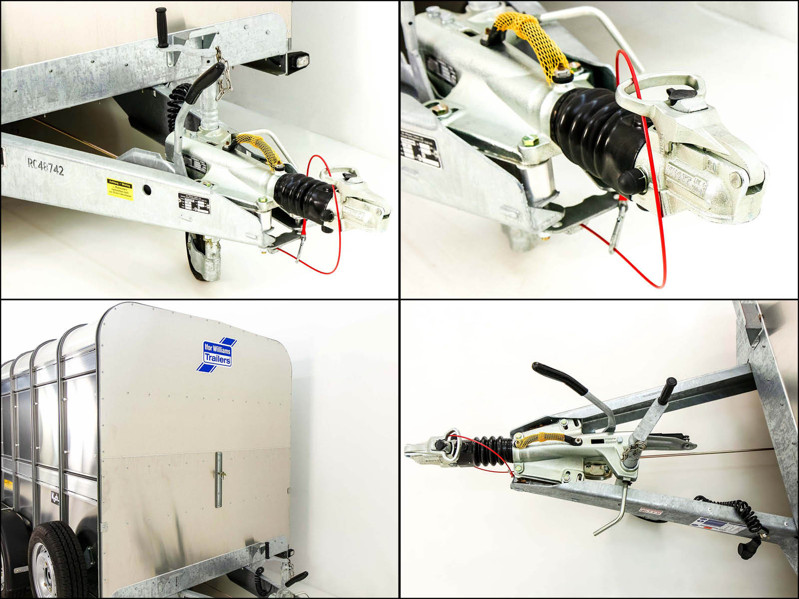 - Blattfedern | Verzinkte V-Deichsel mit Zugkugelkupplung 50mm abschließbar | Stützrad | Rückfahrautomatik